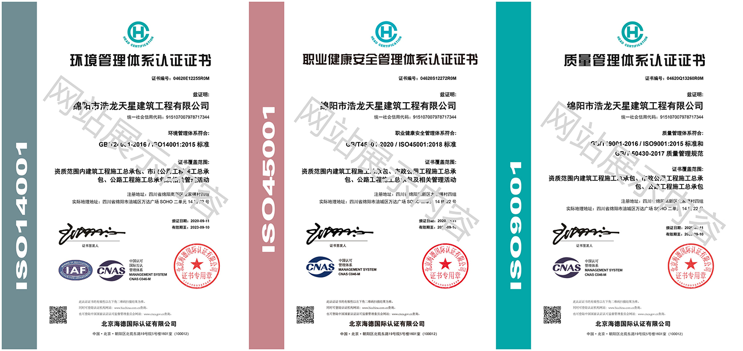 浩龍?zhí)煨浅墙瘓F(tuán)有限公司,2007年成立于“李白故鄉(xiāng)、中國(guó)科技城”—四川省綿陽(yáng)市,企業(yè)注冊(cè)資本金5.0008億元。公司共有27項(xiàng)建筑業(yè)企業(yè)資質(zhì),其中國(guó)家一級(jí)資質(zhì)11項(xiàng),二級(jí)資質(zhì)10項(xiàng),三級(jí)資質(zhì)5項(xiàng),特種資質(zhì)不分等級(jí)1項(xiàng),類別涵蓋建筑、市政、水利、機(jī)電、隧道、起重設(shè)備安裝等基礎(chǔ)及未來(lái)發(fā)展重點(diǎn)專業(yè)。公司...